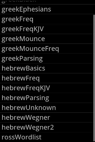 Bible Flashcards contains thousands of Greek and Hebrew flashcards to help you learn the alphabet and vocabulary words. Based off of the lessons provided by CrossWire Bible Society’s free FlashCards program.
