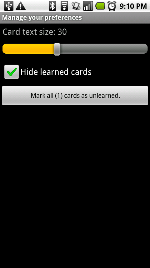 - Preferences to control settings such as card text size, whether to display learned cards, and a button to remove all learned cards from the internal database.